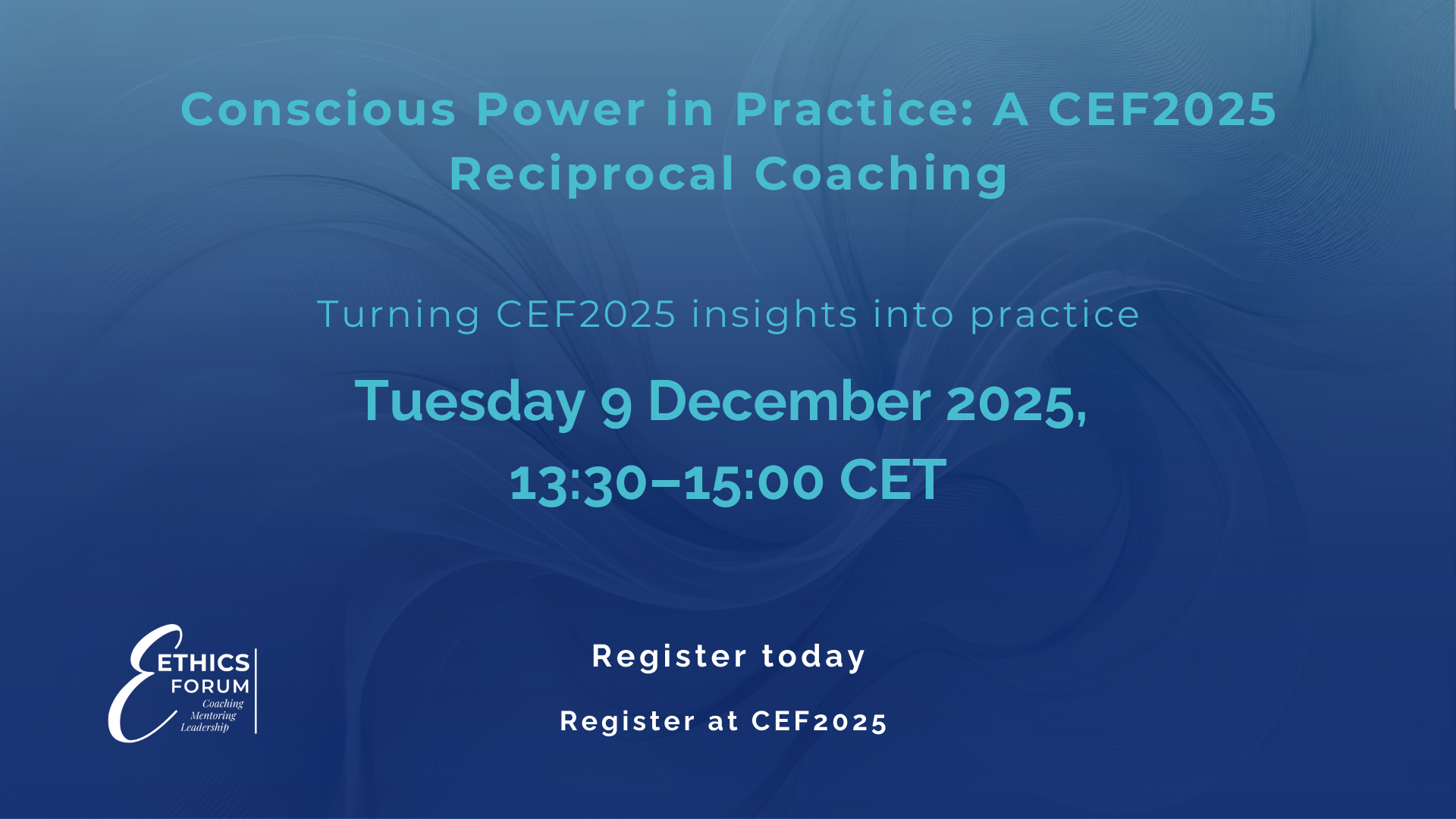 – El martes 9 de diciembre (13:30–15:00 CET), los participantes de la CEF 2025 están invitados a una experiencia gratuita de coaching recíproco de 90 minutos. Facilitado por Rachel Hawley y Silvana Spiegel, es una oportunidad para integrar los aprendizajes de la conferencia mediante sesiones de coaching en díadas. La inscripción se abrirá durante la conferencia a través de la plataforma del evento.